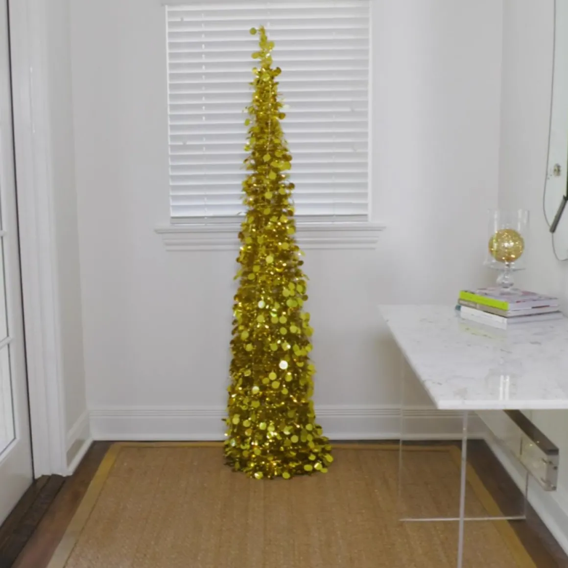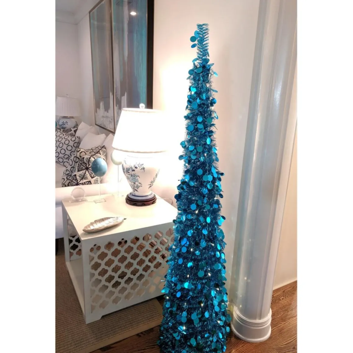 For An Extra Dose Of Holiday Sparkle, Add This Festive, Six-Foot Tinsel Tree To Your Home Decor. Easy To Assemble And Pre-Lit With Led Lights And Shimmering Sequins, The Slim Pop-Up Design Takes All The Hassle Out Of Holiday Decorating.