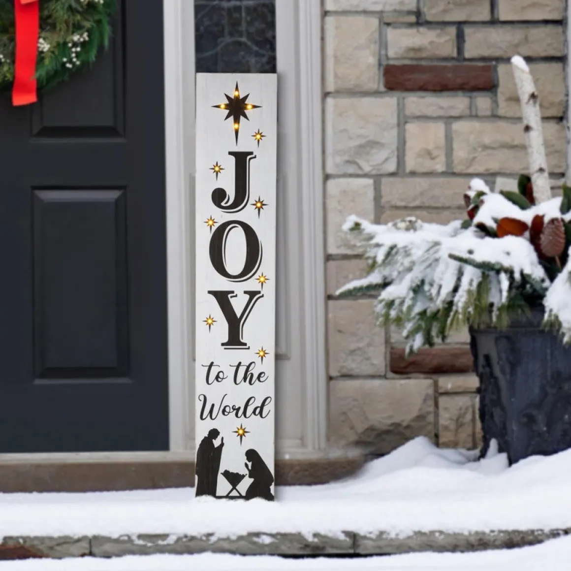 Glitzhome 42″H Lighted Wooden Nativity Porch Sign