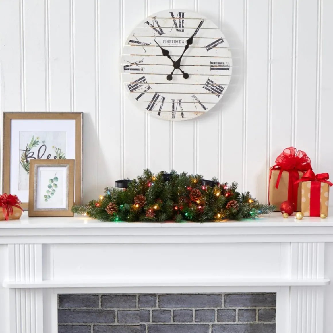 Set Your Home Aglow This Holiday Season With The Help Of This Artificial Candelabrum; Specifically Designed As An Elaborate Candle Holder, It’s Intricately Designed From A Rich Overgrowth Of Realistic Looking Evergreens, Handsomely Accented With Miniature Faux Pinecones, Carefully Surrounding A Trio Of Candle Holders In A Light Frosting Of Fake Snow. Better Yet, This Seasonal Centerpiece Comes Already Pre-Strung With 35 Multi-Colored Lights, Eliminating Pre-Tangled Messes And Holiday Stress. Reaching 30″ Long, This Winter-Ready Decorative Accent Would Make An Enchanting Addition To A Mantle Or A Holiday-Inspired Tablescape. Materials:Pe, Pvc, Iron Wire Dimensions:H: 30 In. W: 8 In. D: 8 In