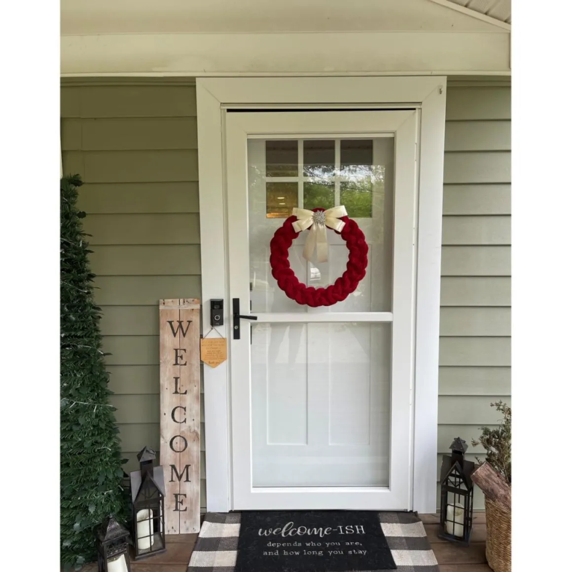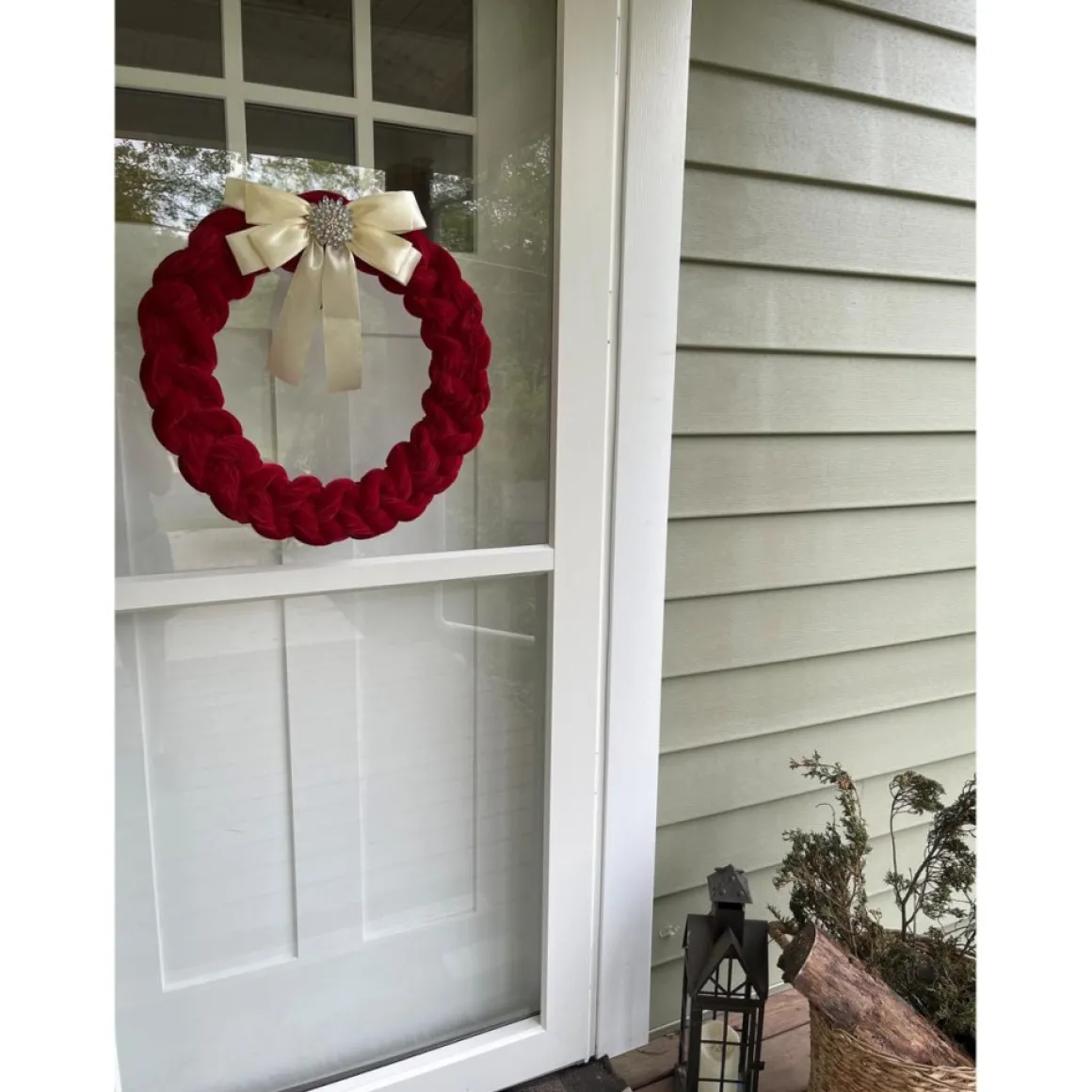 Elevate Your Holiday Decorations With This Braided Velvet Wreath. Available In Your Choice Of Ivory Or Red, It Features An Oversized Satin Bow Adorned With A Jeweled Ornament To Make A Sparkling Statement Inside Your Home.